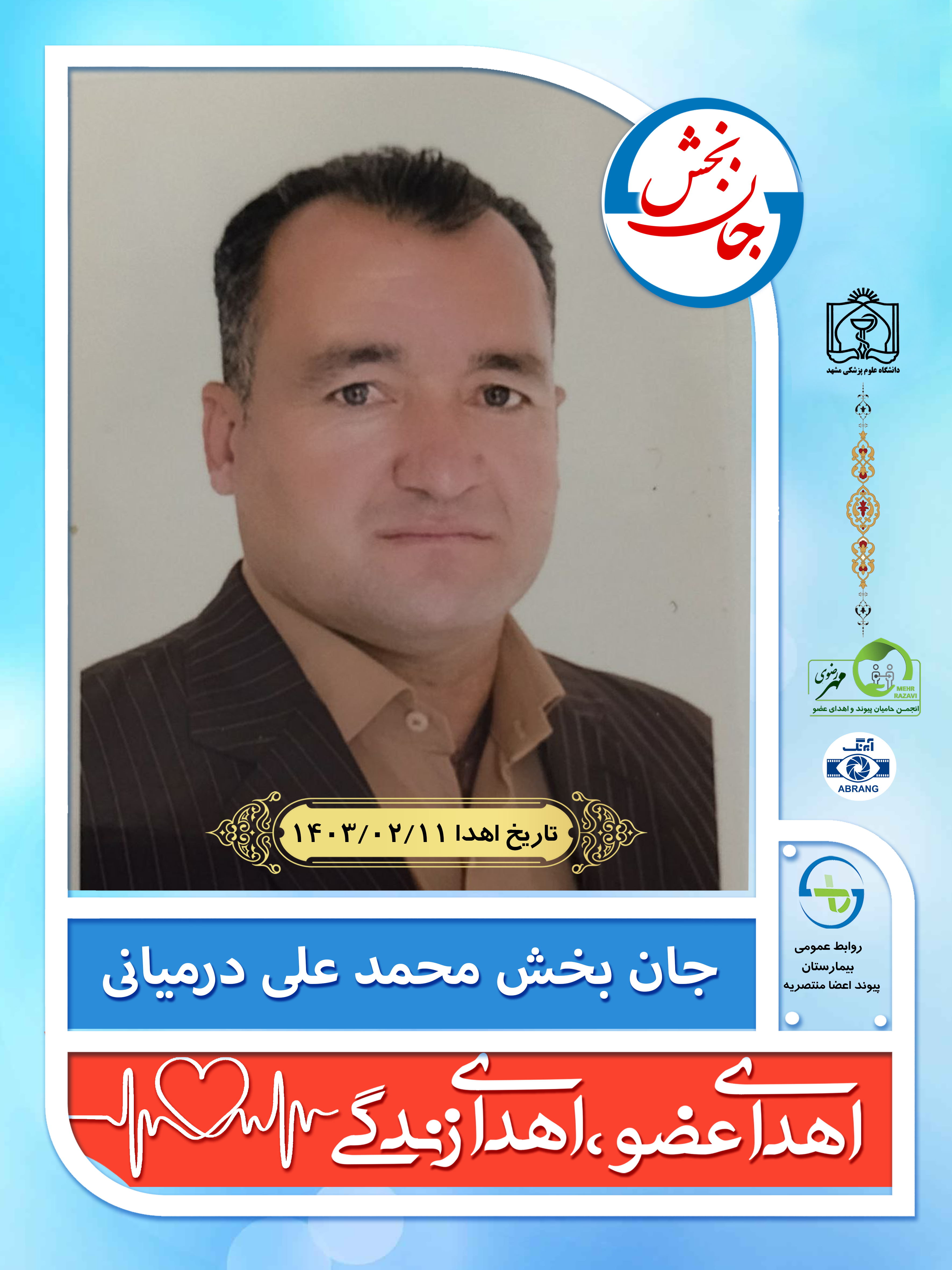وی افزود : قرنیه های مرحوم محمدعلی درمیانی جهت پیوند به بانک چشم دانشگاه علوم پزشکی مشهد و قسمتی از پوست ایشان برای پیوند به بیماران بخش سوختگی بیمارستان امام رضا(ع) مشهد ارسال شد.